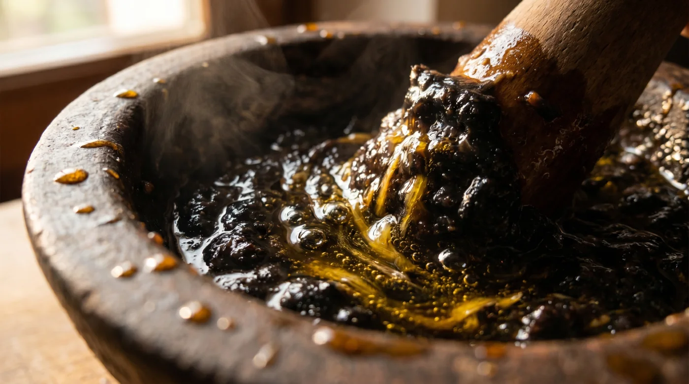 Pensa a questo processo come ad accordare uno strumento scordato. L’olio extravergine, quando viene portato a una temperatura tiepida, diventa elastico. Scivola tra le fibre tenaci dell’aglio nero, abbassando la resistenza del bulbo e inglobando ogni particella aromatica idrosolubile.
